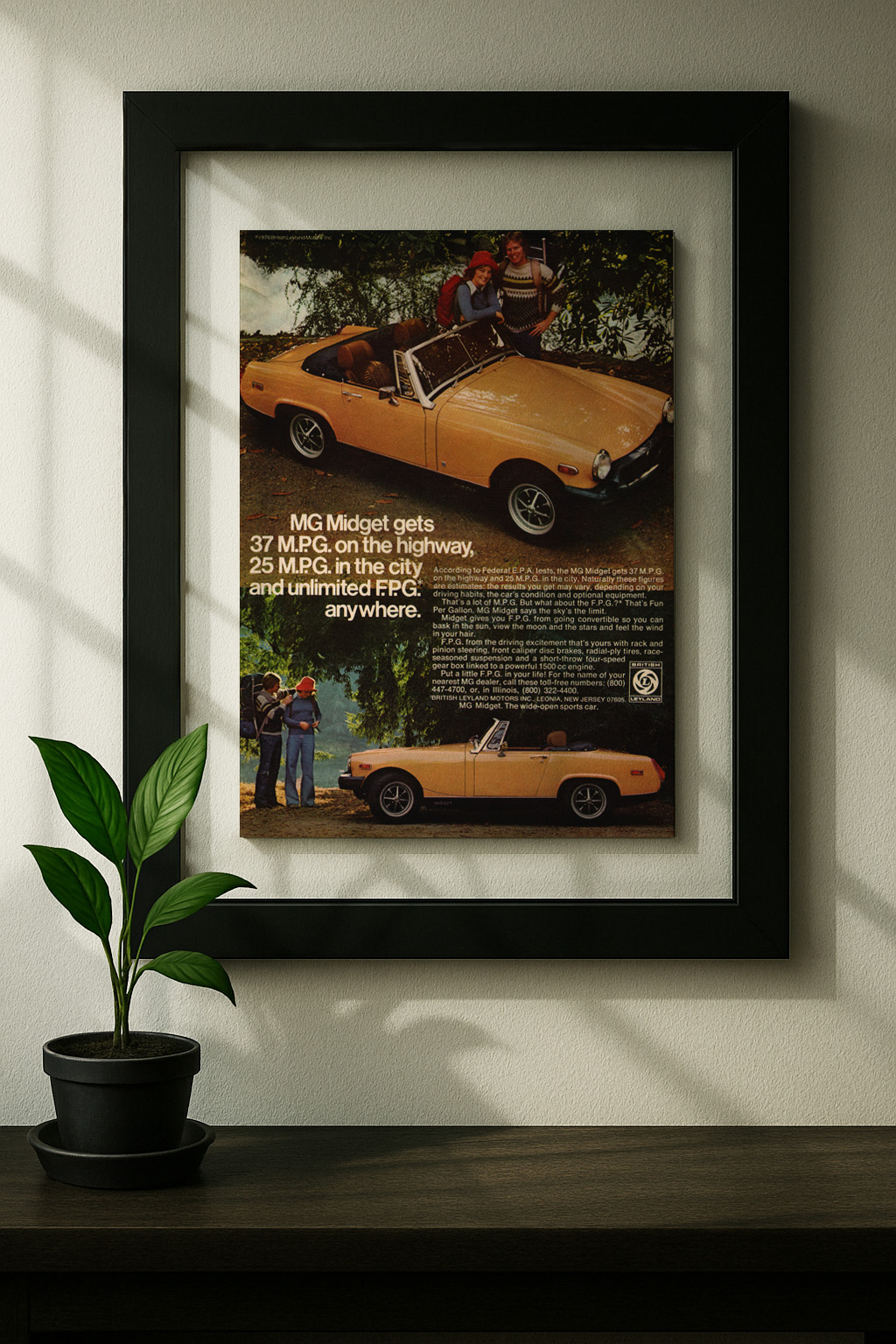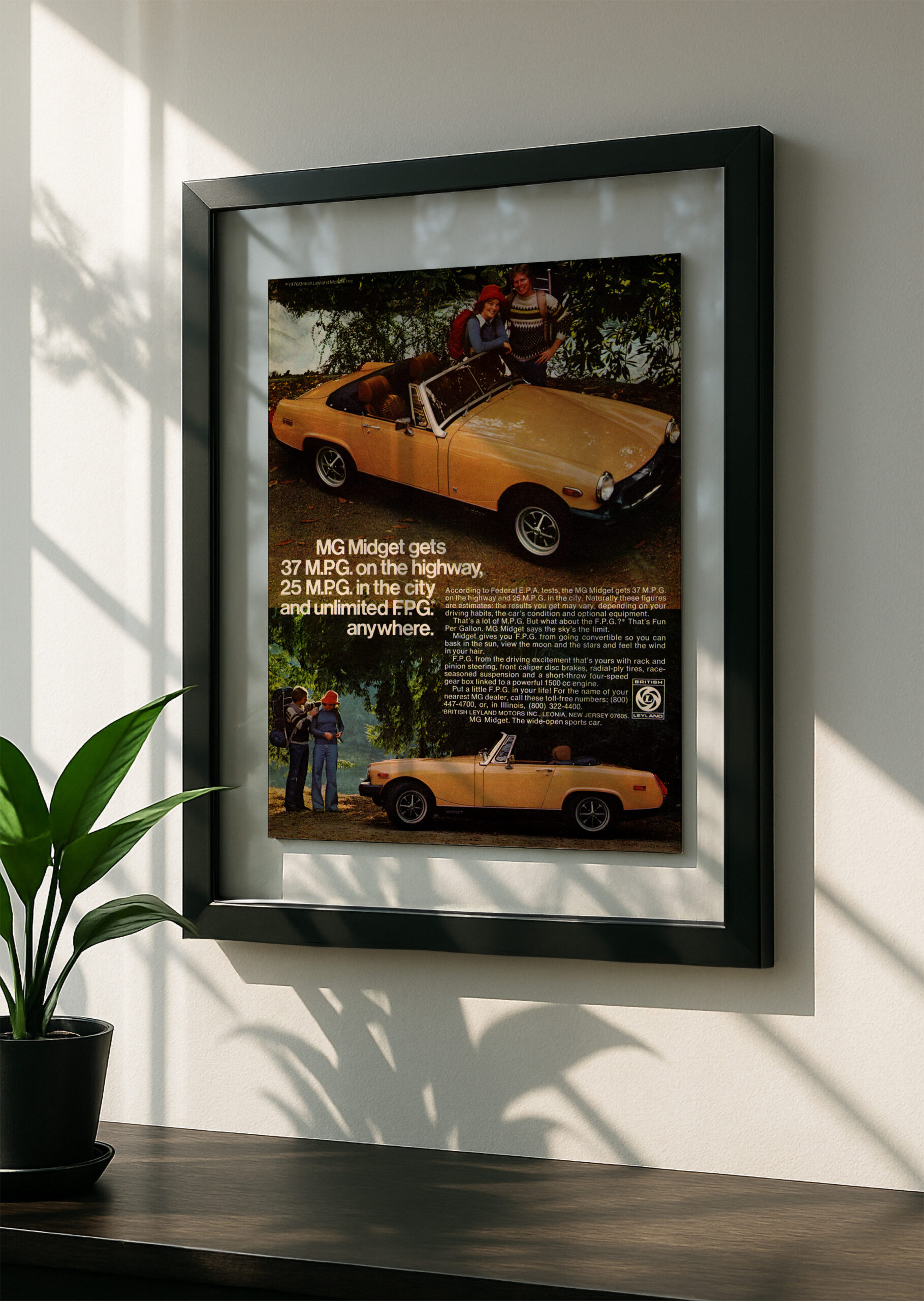 We pride ourselves in being the only producer of automotive art that will match any existing room set up. We accomplish this as the only seller of “floating frames” in the market- where there are only 2 glass panes surrounding the print. This way the wall or background behind the frame shows through, making it a seamless addition to the room.